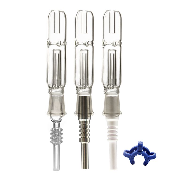 Mini Glass Smoking Straw Kit Small Glass Pipes Pro Dab Rig With Titanium Quartz Nail Dabber Dish 10mm 14mm 18mm Glass Pipe Nc12
